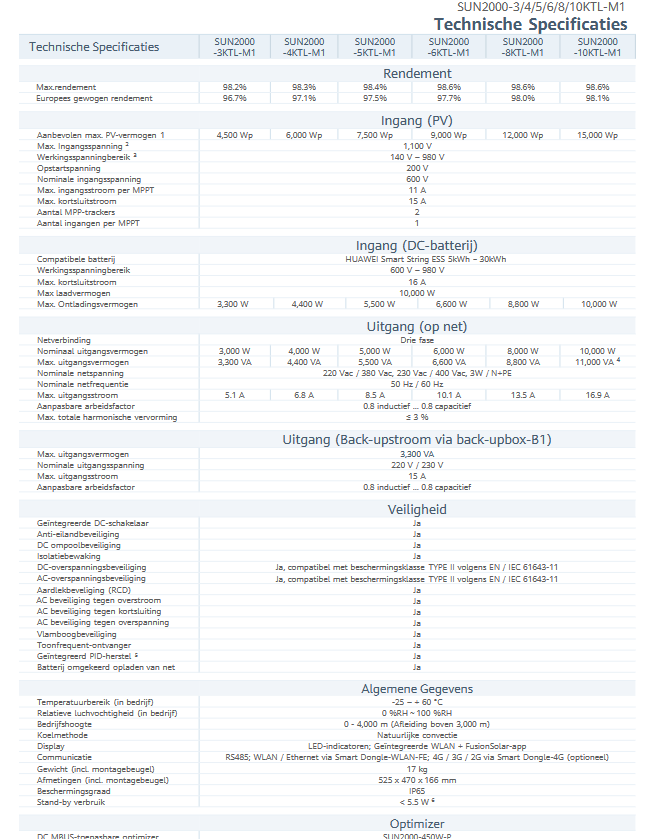 De Huawei SUN2000 -4KTL-M1 heeft de volgende kenmerken en voordelen: